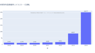 年間2.5万作へ!FANZA同人イラスト・CG集(2018-24)をデータ分析。23年以降AI作品急増で市場激変!「野外・露出」「制服」台頭の背景、技術シフトなどを解説。クリエイター向け戦略視点も。