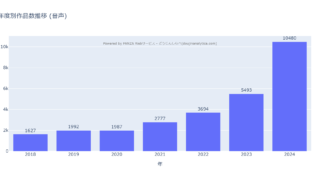 年間1万作超え!FANZA同人音声(2018-24)をデータ分析。6.4倍成長の背景、人気No.1「オナニー」、ASMR台頭、動画付き需要などを解説。音声作家向け制作のヒント。