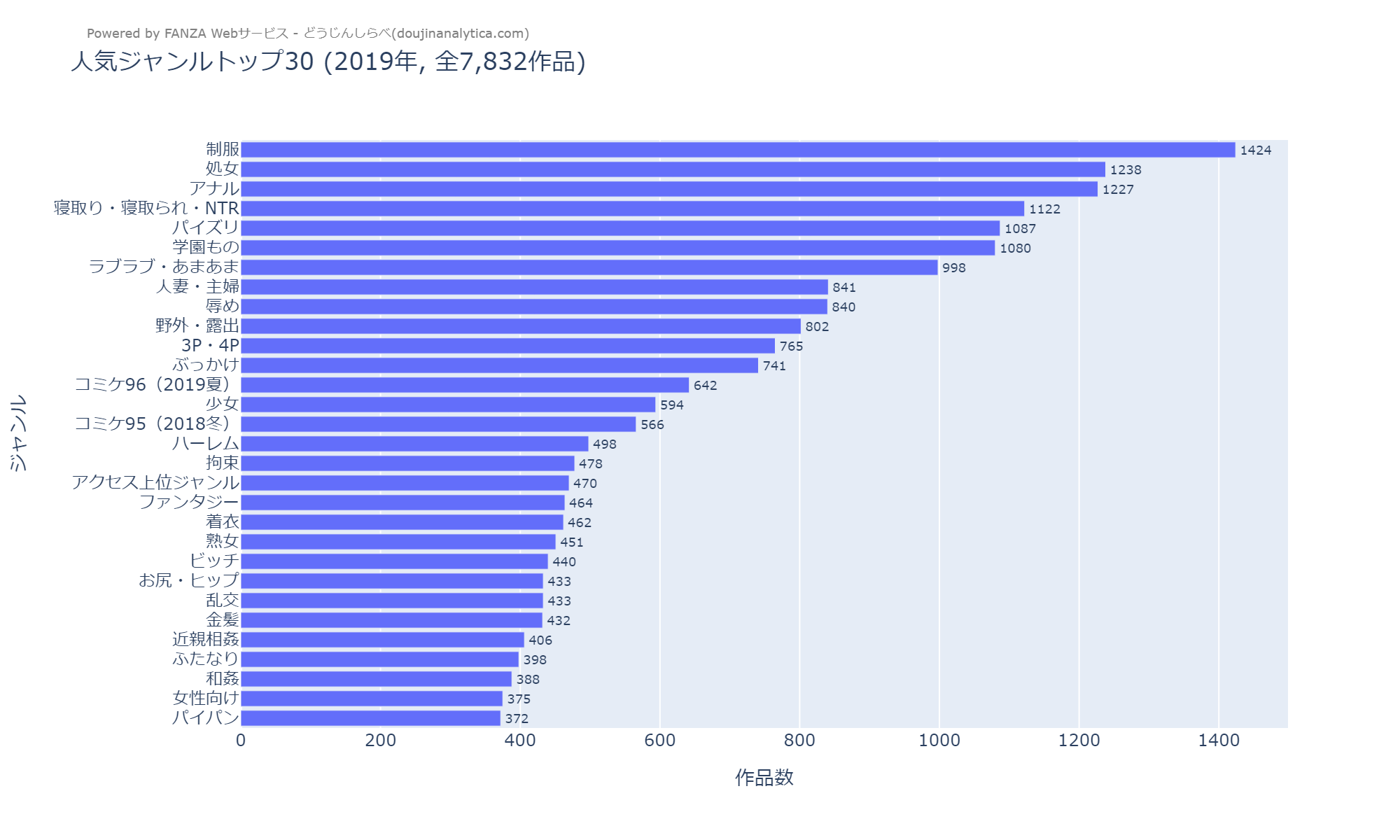 - 2019年: 総作品数 7,832件 → ふたなり作品数 398件 (割合 5.1%)